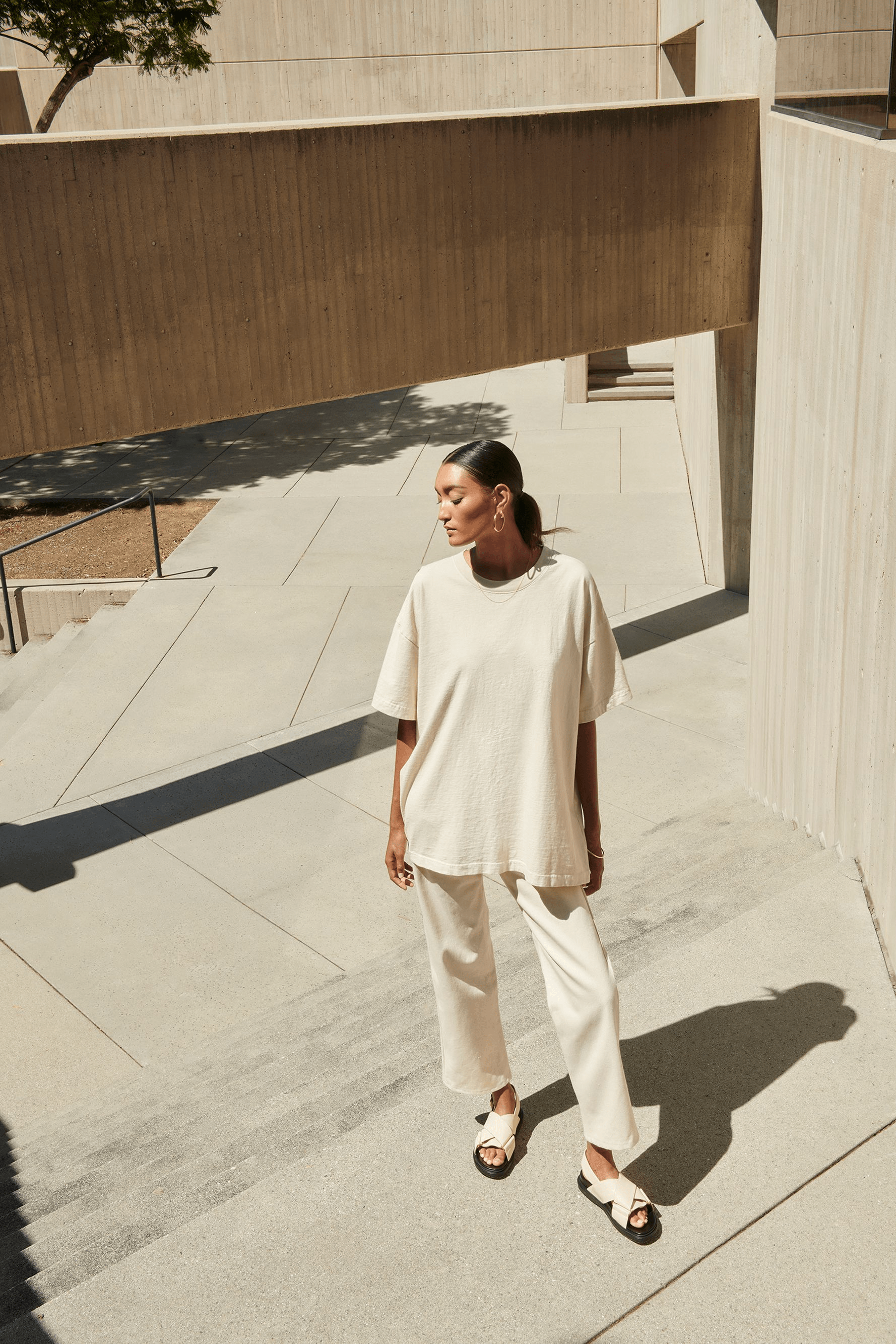 The Vista T-shirt. A unisex vintage cotton relaxed, oversized T-shirt. A round crewneck in heavy jersey. Detailing Kitty Cooper’s signature letter K, embroidered on the front bottom left, in a discreet matching ecru thread. Perfectly pair the Vista T-shirt with the Lincoln trouser, Lake shirt, the Domingo jacket. Alba and Auguste Crewnecks.Product details: